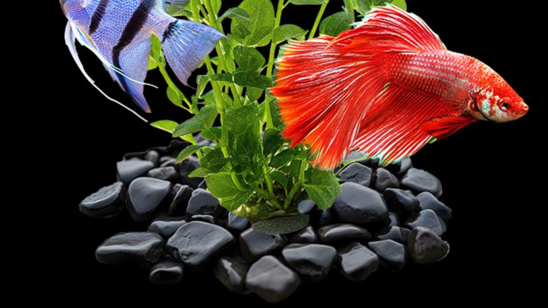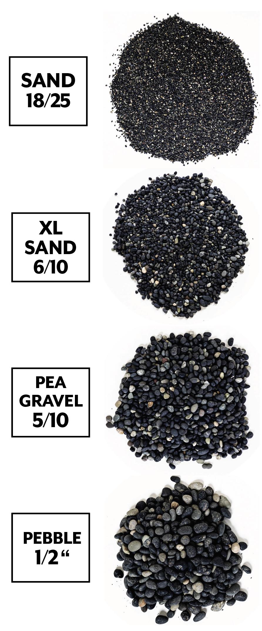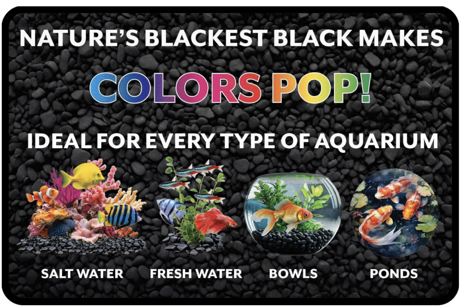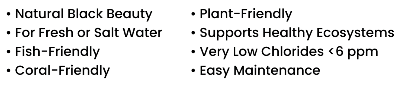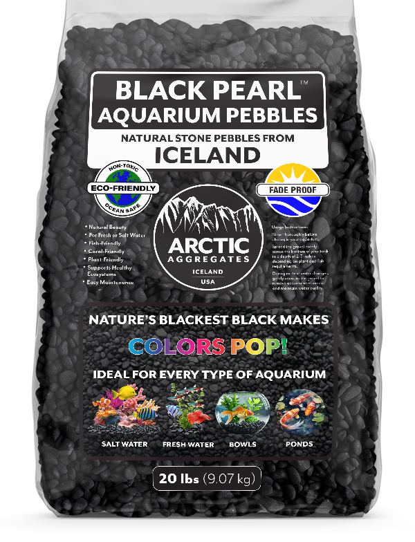 All-natural black stone gravel for fresh and salt water aquariums.